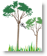Vamos a modificar una curva del árbol 1 (el árbol que se encuentra más a la izquierda). Para facilitar la edición, ampliaremos la zona que vamos a modificar.